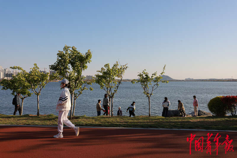 4月29日,山东荣成,樱花湖体育公园内,人们在游玩。该公园是荣成滨海马拉松赛道的一部分,公园内全程铺有塑胶跑道。作为与中国田协共办的A类赛事,荣成滨海马拉松曾在上届赛事中荣获“中国田径协会银牌赛事”和“最美赛道”殊荣。中青报·中青网记者 曲俊燕/摄