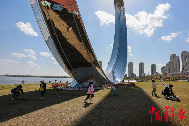 4月29日,山东荣成,樱花湖体育公园,人们在游玩。中青报·中青网记者 曲俊燕/摄