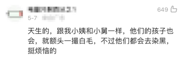 有网友怀疑这是年轻人所钟爱的“挑染”,即只挑某一处头发进行局部染白以显得时尚。
