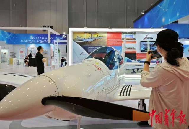 同在一个展区,两款飞机各有特色,面向不同客群。刘丹告诉中青报·中青网记者,这次展出的轻型运动飞机,已在浙江本地的建德千岛湖通用机场运营,参展时被临时调用。相邻展位展出的鲨鱼飞机则是同级别速度纪录保持者,闫超一介绍,该款飞机起落架可收放,可以应用于飞行体验、应急救援、航拍航测等领域,已在河北实现国产。