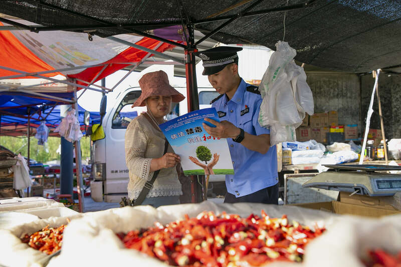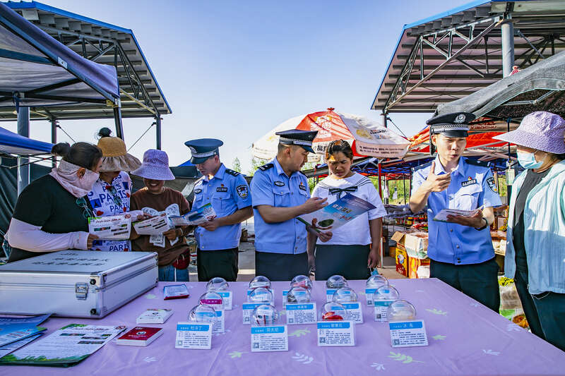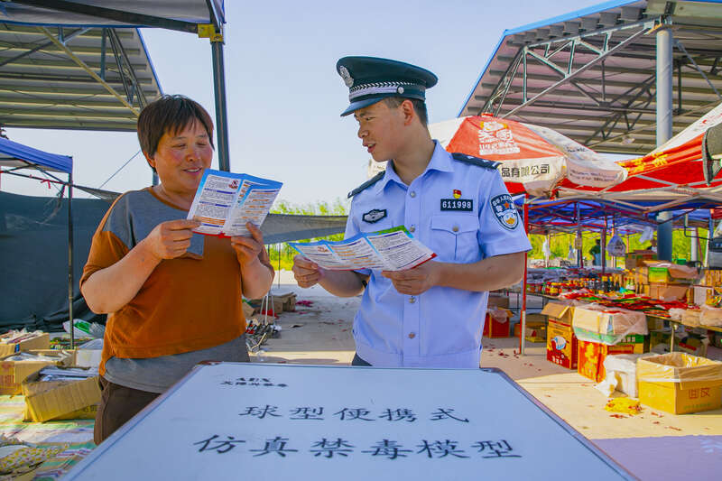 中国青年报客户端新疆伊犁5月18日电(王鹏飞 邓宇 中青在线记者 齐琪) “瞧一瞧,看一看,这里的物品最新鲜。不花钱,不易物,禁毒知识免费送!”5月18日,一声声吆喝在新疆伊犁察布查尔锡伯自治县爱新舍里镇巴扎上传开,吸引了众多赶集的群众前来围观。巴扎现场,新疆伊犁边境管理支队爱新舍里镇边境派出所开展形式新颖的“摊位式”禁毒宣传教育活动。