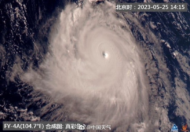 @中国天气 5月25日消息,今天白天,“玛娃”强度继续增强,眼区变得更加浑圆,下午5点钟(北京时间,下同)其中心附近最大风力有17级以上(62米/秒),中心最低气压为915百帕。强度已超过了之前的南印度洋热带气旋“弗雷迪”和“穆查”,成为今年以来的全球风王。