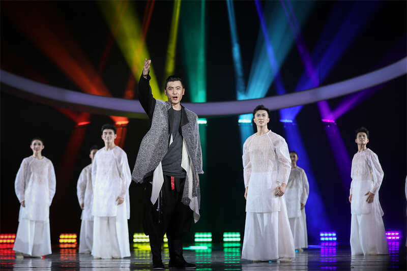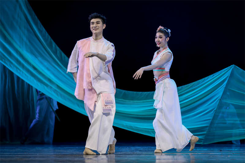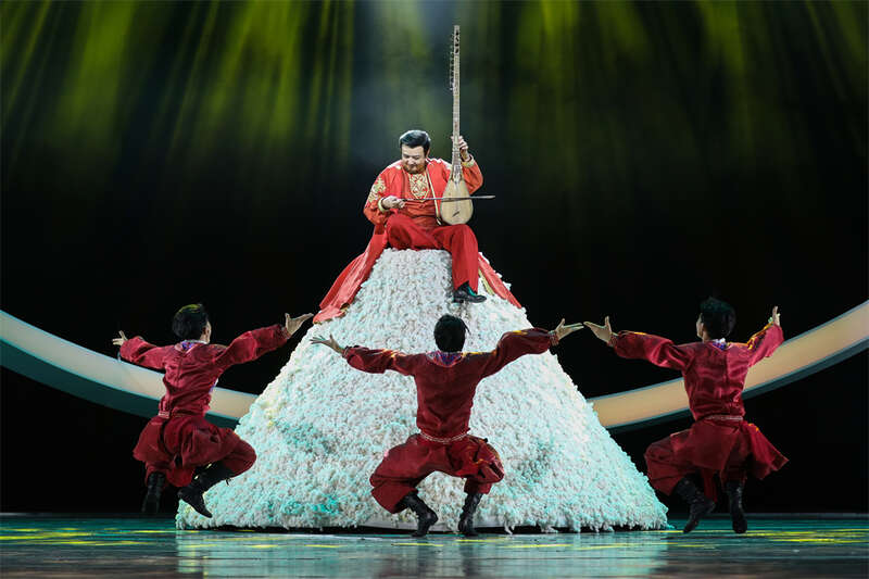 中国朝鲜族的鼓、乐、舞,国家级非遗宏音斋笙管制作技艺、北京风筝制作技艺,广西京族渔民在浅海高跷捕鱼的景象,贵州苗族传统民俗活动“斗牛”,傣族染坊手工艺,新疆维吾尔族古老乐器萨塔尔……在舞台上接连登场,在艺术的融合中探寻中华文化的交融和对时间与命运的思考。