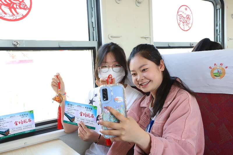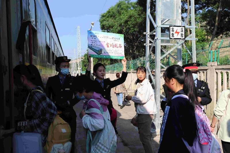 参加高考的学子乘坐小慢车。中国铁路兰州局集团有限公司宣传部供图