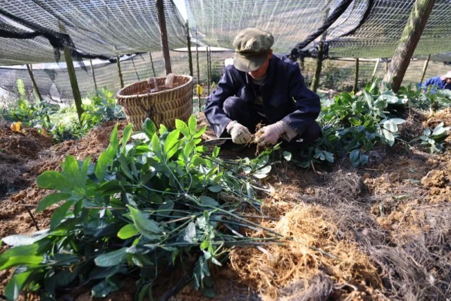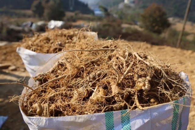 村民正在采挖三七。(新华每日电讯记者谢锐佳2023年2月13日摄)“我们通过土地流转、提供种苗、技术帮扶、收购原料、开发产品等方式,带动了近1000户农户增收,实现长期稳定就业300余人,解决临时就业5000余人。”致力于三七种、产、研的云南七丹药业公司负责人杨朝文说。“文山已建成全国最大的三七产地交易市场,全国90%的三七原料通过文山上市交易。”文山州三七和中医药产业发展中心主任李保能自豪地说。