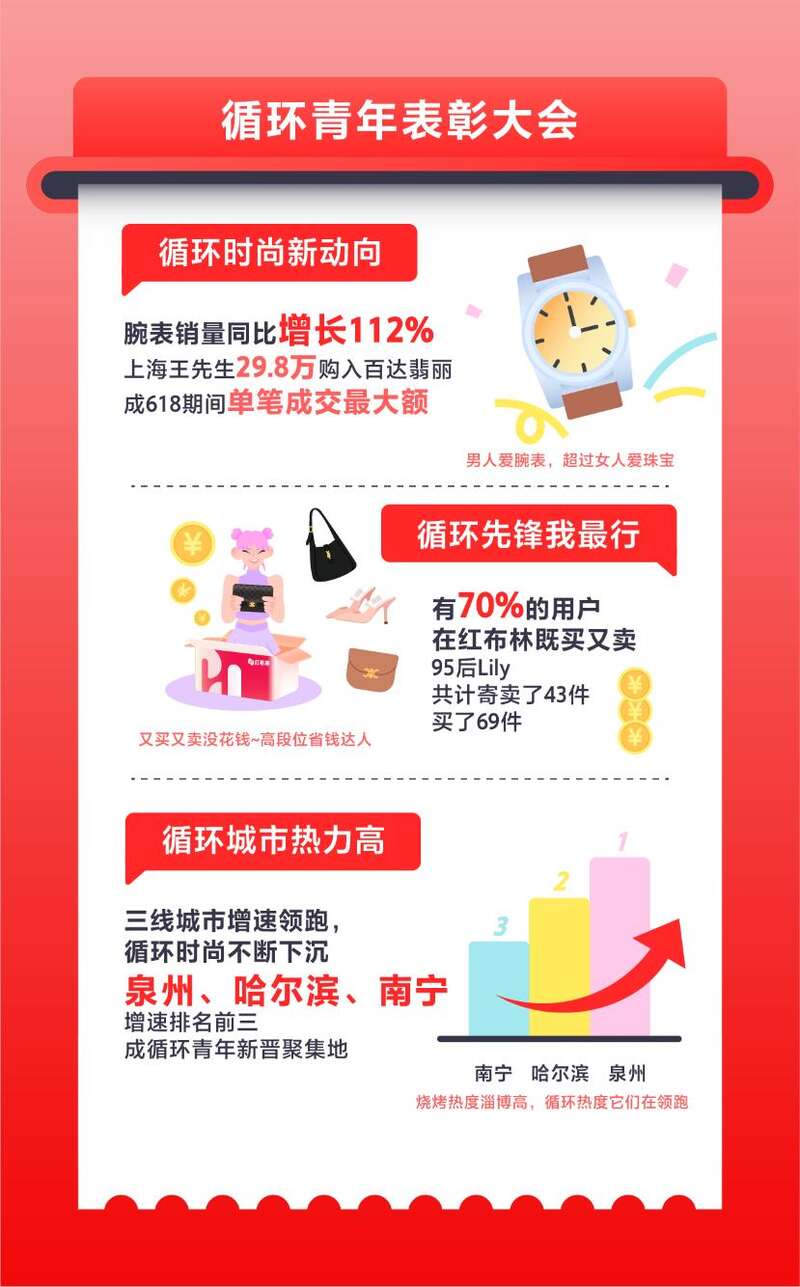 中国青年报客户端讯(中青报·中青网记者 孟佩佩)6月19日,循环时尚生活方式平台红布林发布的今年618战报数据显示,6月1日-6月18日,红布林吸引数十万循环青年参与,参与活动的商家货量同比增长319%,平台寄卖、回收商品量创下历史新高,同比增长达51%。