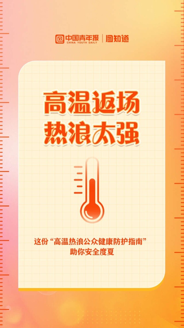 高温返场,热浪太强!最近几天,华北黄淮高温再起。我们该如何在高温天气科学保护自己?国家疾控局特意发布了《高温热浪公众健康防护指南》。让我们一起学习科普知识,预防和降低高温热浪对我们的健康危害吧。
