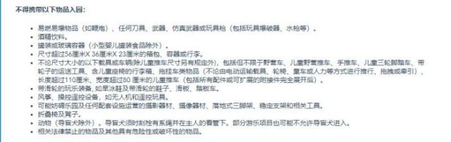 中新财经查询上海迪士尼乐园游客须知发现,确有“不得携带折叠椅及凳子入园”的规定。10日,中新财经致电上海迪士尼乐园客服,对方表示,游客须知中确实有该规定,但原因并不清楚。而对于“排队时间太长,又没有地方坐时,园区是否有应对措施“的问题,客服表示,需要当天去乐园里面咨询。(中新财经)
