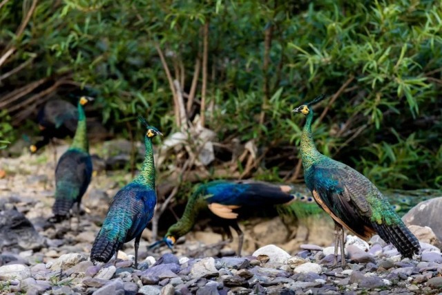 绿孔雀是国家一级重点保护野生动物,被世界自然保护联盟评定为“全球性濒危”等级。中国绿孔雀野生种群目前仅有555至600只,楚雄州300只左右,占全国总数的50%,是名副其实的“中国绿孔雀之乡”。