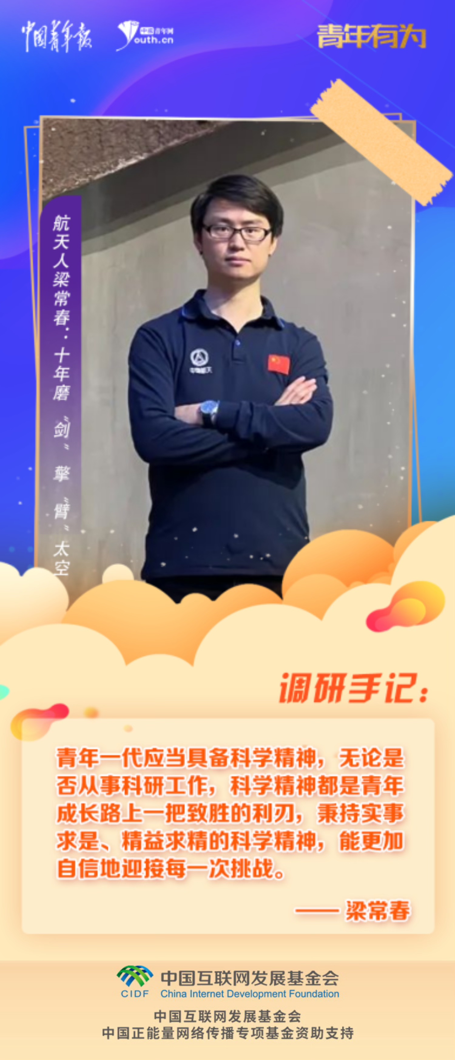 梁常春也是一大批航天青年“挑大梁、担重任”的缩影,他们展现着新时代中国青年奋发有为的精神风貌。