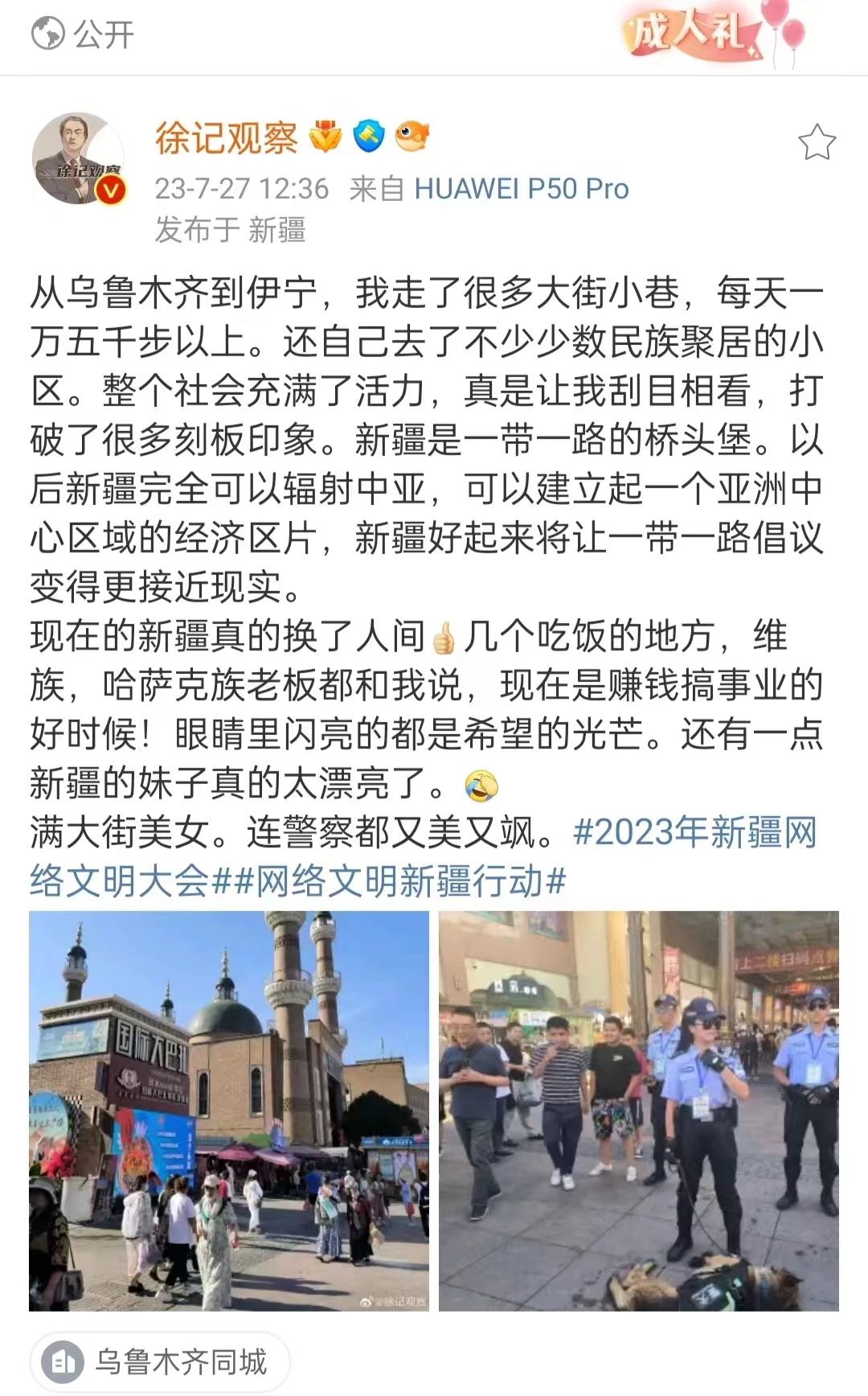 真实的新疆到底怎么样?一千个读者就有一千个答案。网络名人新疆行活动,正当其时十分必要。期待更多的人来大美新疆打卡,实地感受新疆的美食美景和多彩文化!