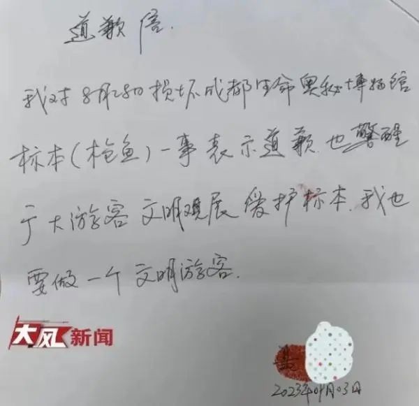 掰断枪鱼标本肋骨的涉事男子已被找到