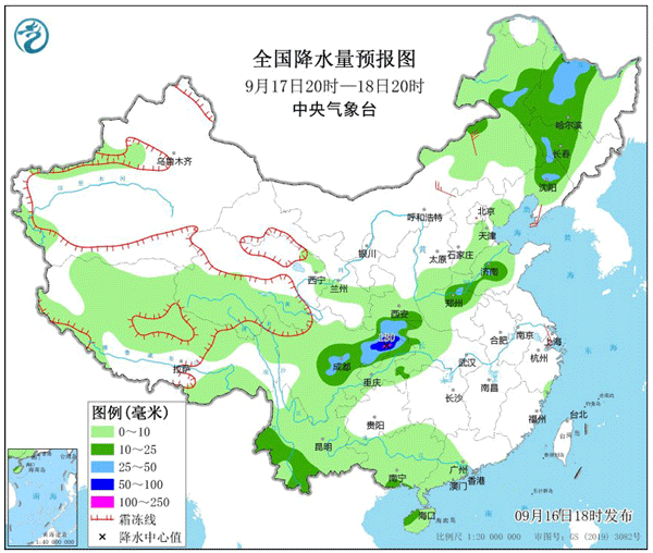 17日夜间至18日强降雨主要集中在四川东部至重庆;19日至20日强降雨区将陆续影响江汉、黄淮和江淮等地。