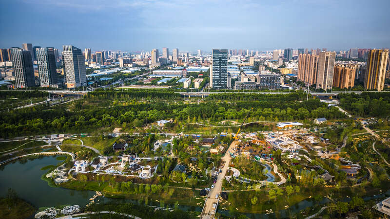 据了解,合肥园博会建设过程中,完整就地保留园内683棵老树,种植乔灌木总量11.4万株,乡土树种占80%以上。实现了土方就地平衡,建设过程中没有一方土出园,全部园内消纳。此外,利用原骆岗机场航站楼等16万㎡的老旧建筑进行更新改造,最大程度保留和保护既有建筑和现状植被,让老建筑焕发时代活力,打造园博小镇,为市民和游客提供吃住行游购娱一站式体验。