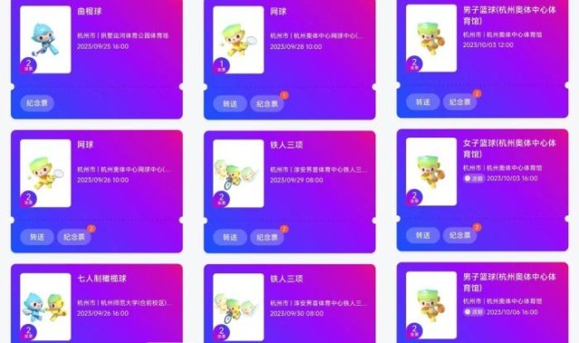 张向宇的部分亚运门票。受访者供图