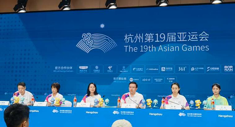 10月3日,浙江杭州,“青春亚运”杭州亚运会志愿者主题新闻发布会现场。中青报·中青网见习记者 尹希宁/摄