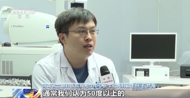 河南省立眼科医院视光学中心医学验光科副主任 石梦海:院外的机构验光,我们复核发现度数偏差比较大的,偏差50度以上的其实我们每周都能见到。