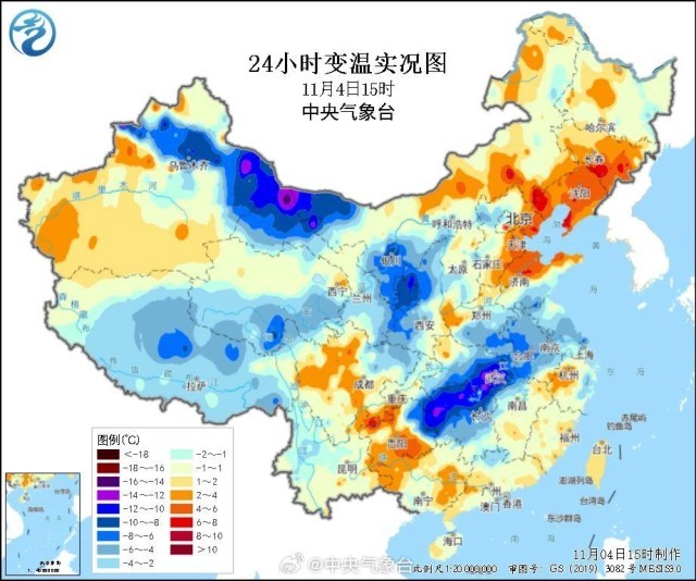 △11月4日寒潮影响已经凸显,新疆、内蒙古出现降温。