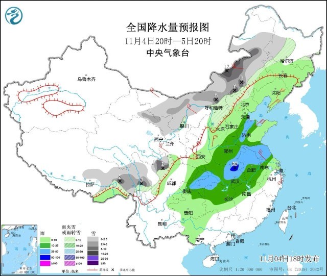 除了大风、降温,寒潮还将给我国带来大范围雨雪天气。预计,4日20时至6日20时,内蒙古中东部、东北地区中西部和北部等地自西向东先后有大到暴雪,部分地区有大暴雪,局地特大暴雪(30~34毫米),新增积雪深度10~20厘米,局地可达25厘米以上。主要降雪时段5日夜间至6日。