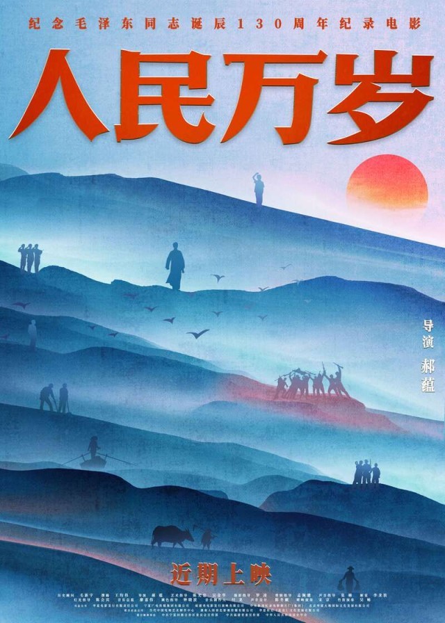 在《人民万岁》公布的首款海报中,水墨丹青的壮丽河山跃然眼前,画面里有牵牛耕犁的农户、摇船唱曲的船夫、为胜利鼓旗呐喊的革命者……在山峦之上,笃定前行的人民领袖与朴素勤劳的中华儿女共同奔赴朝阳。海报描绘了毛泽东同志与人民百姓携手同行、患难与共的历史画卷,彰显他“人民万岁”的铮铮誓言。