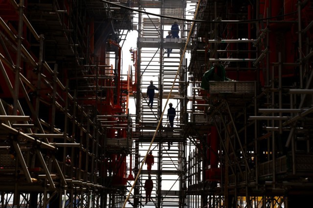 7月6日,工人穿梭在在海油工程天津智能化制造基地建造现场。