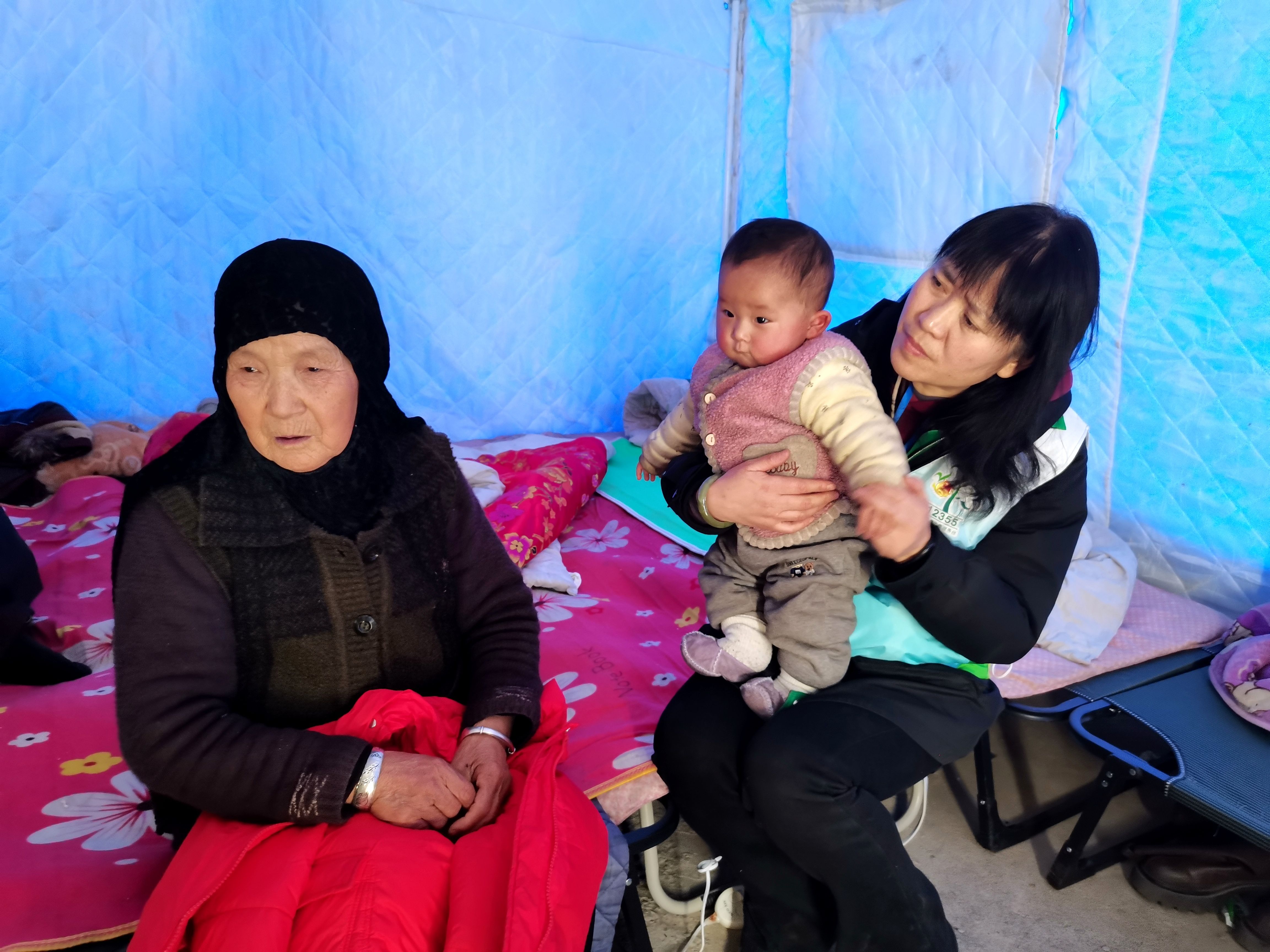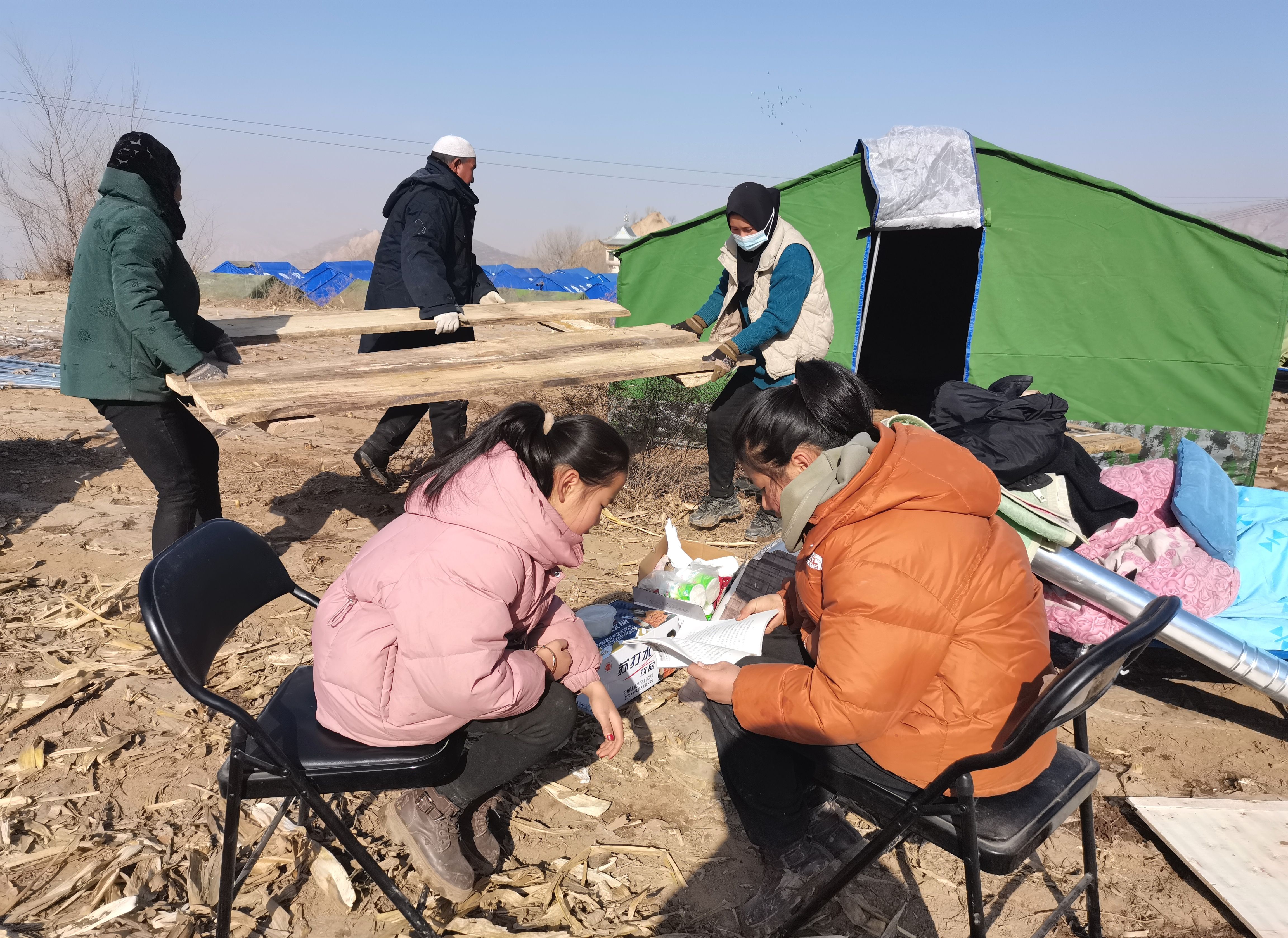 积石山县大河家镇陈家村安置点,12355青少年服务站工作人员入户了解青少年儿童震后心理情况。
