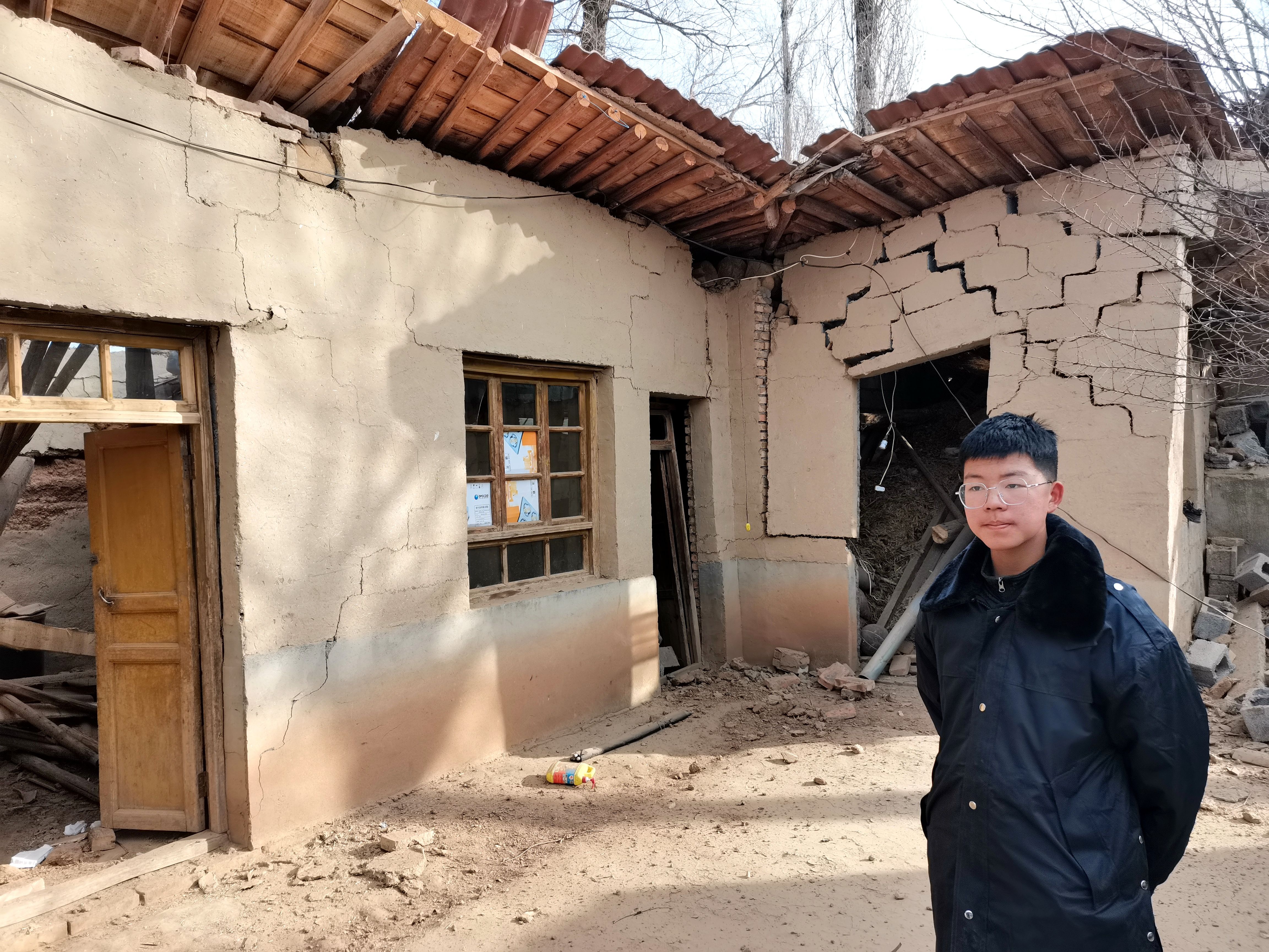 地震发生后,15岁的积石山县大河河家中学高一学生吴俊录回到陈家村的家中,发现房子都倒塌了。