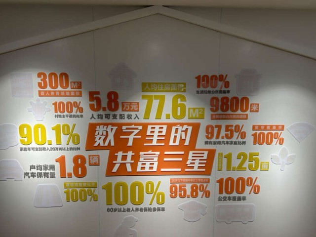 浙江省嘉兴市凤桥镇三星村公共服务中心的一面墙上,写满了三星村在共同富裕建设方面的成果。中青报·中青网见习记者 贾骥业/摄