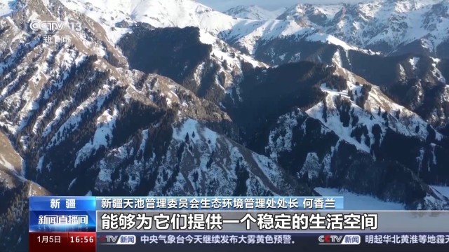 新疆天池管理委员会生态环境管理处处长 何香兰:雪豹把天山天池作为一个比较固定的栖息地,说明这儿的生态系统完整和食物链的稳定性,能够为它们提供一个稳定的生活空间。