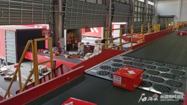 京东物流乌鲁木齐“亚洲一号”智能产业园内快件自动分拣线一角。(资料图)