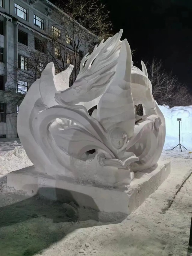 哈工程校园内的雪雕长廊曾创“吉尼斯”“世界上规模最大的大学生雪雕群雕”的