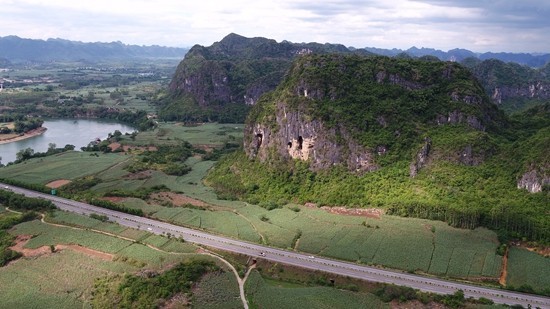 广西崇左喀斯特地貌景观,高速公路旁可见“展望洞”。