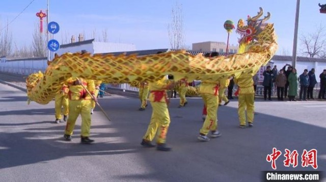 正月初二,在新疆喀什地区疏勒县阿拉力乡,民众们舞起巨龙,各族群众组成的巡游队伍穿梭在大街小巷,大家通过舞龙舞狮给沿途群众送去祝福,营造欢乐祥和喜庆的节日氛围。