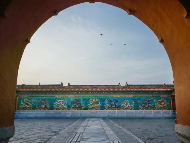 在中国传统院落里,人们习惯在大门里或门外竖立一面墙,起遮挡、装饰作用,这就是人们常说的照壁。当九龙图案、琉璃材质装饰到这面墙上,就形成了高等级照壁。