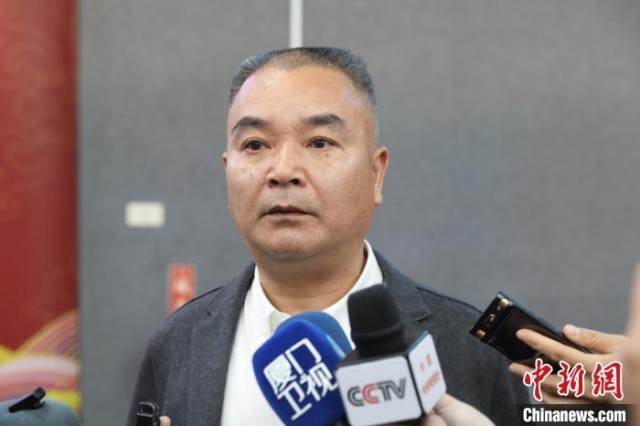 泉州晋江红十字会高级顾问李朝晖在金门水头码头接受中新社等媒体采访。中新社记者 杨程晨 摄