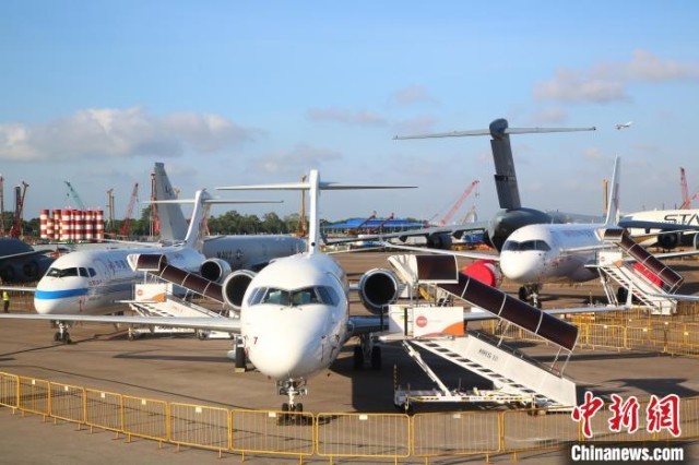 中新社北京2月20日电 (记者 孙自法)中国商用飞机有限责任公司(中国商飞)20日发布消息说,中国2架大型客机C919和3架支线客机ARJ21首次亮相当天开幕的新加坡航展,并通过馆内模型展览、室外静态展示和飞行表演等多种方式,向公众呈现中国商用飞机发展的阶段性成果。航展期间,C919和ARJ21将进行飞行表演,中国商飞还将开展专场推介活动,加强与客户和合作伙伴的洽谈交流。