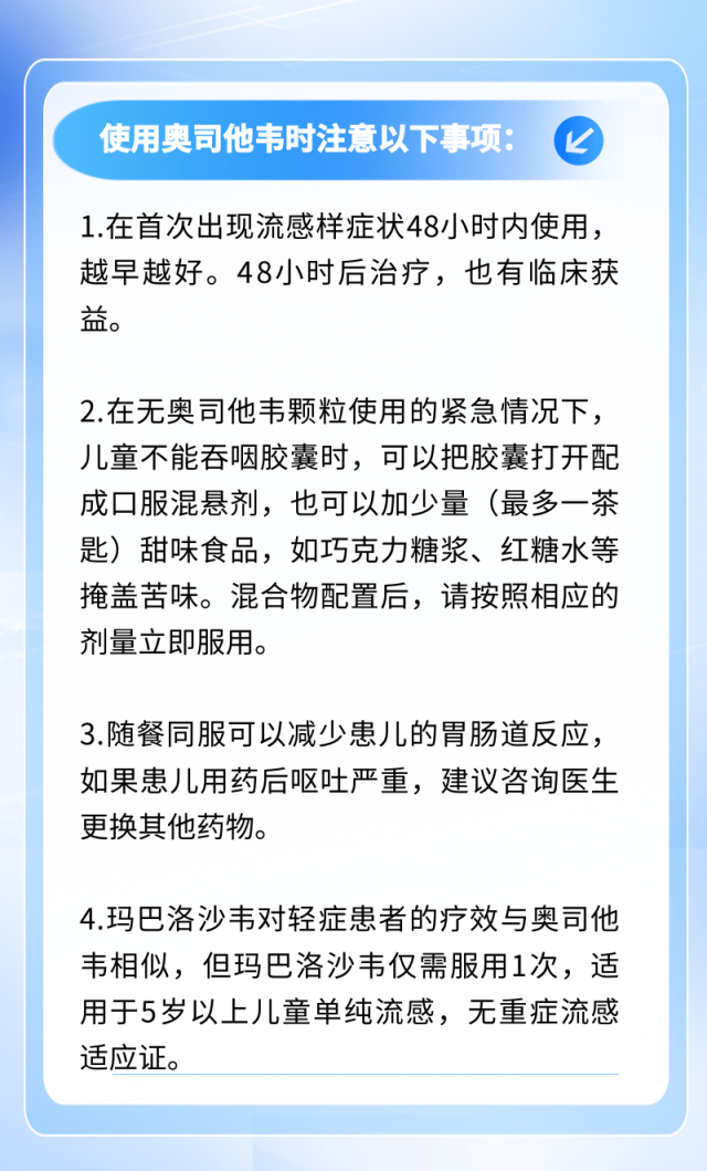 儿童上呼吸道感染最常见的病原体为病毒,如鼻病毒、副流感病毒、流感病毒、呼吸道合胞病毒、腺病毒等。抗流感病毒的药物主要包括奥司他韦(口服)、玛巴洛沙韦(口服)、扎那米韦(吸入)、帕拉米韦(静脉)等。在诊断为流感病毒感染后,为了尽快阻断病情发展,减轻患儿症状,应尽早使用抗病毒药物。家长需要注意的是,如果是单纯病毒感染,抗菌药物(如头孢类、阿奇霉素、红霉素等)是无效的。