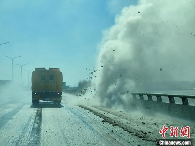图为江西省交通投资集团安排除雪车进行除冰作业。江西省交通投资集团供图