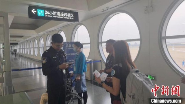 厦门口岸24小时直接过境旅客免办边检手续人员突破1万人次。 厦门高崎边检站供图