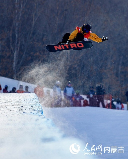 2月17日,在单板滑雪公开组女子U型场地技巧决赛上,黑龙江选手蔡雪桐在决赛中以85.75分的成绩夺得冠军。李峰摄