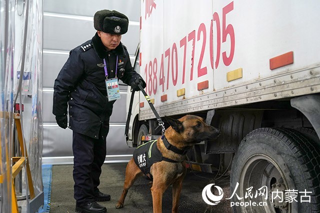 为保证“十四冬”赛事顺利进行,呼伦贝尔市公安局共调集警犬基地反恐怖和特巡警支队等单位33名训导员、33只警犬,组成安保“汪汪队”,执行日常巡护任务。