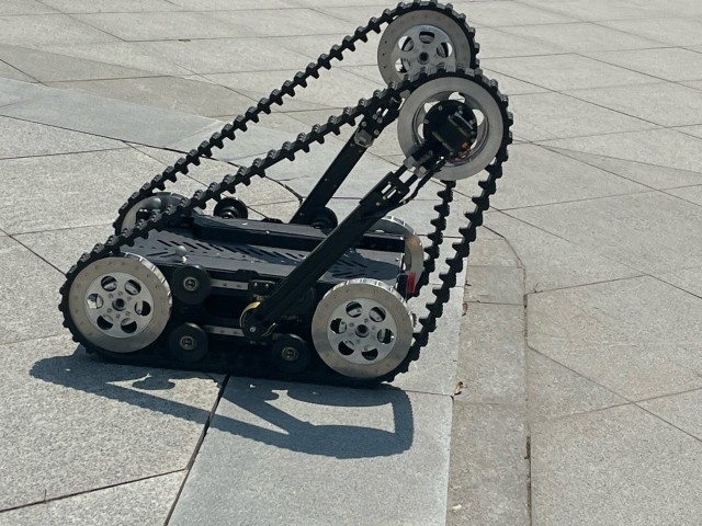在浙江大学湖州研究院,一款全地形履带机器人格外引人注目。三角形设计赋予了履带卓越的变形能力和稳定性。在保证机体尺寸小巧的条件下,具备良好的跨障越层性能,可轻松通过台阶、楼梯等典型障碍环境,具备近似全地形的移动能力,解决传统移动平台小则越障能力有限、大则使用场景受限的“痛点”。