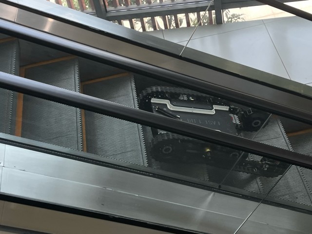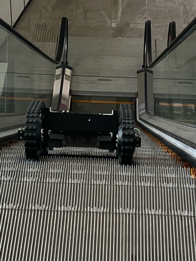 全地形履带机器人在自动扶梯上下自如。中青报·中青网记者 李剑平/摄