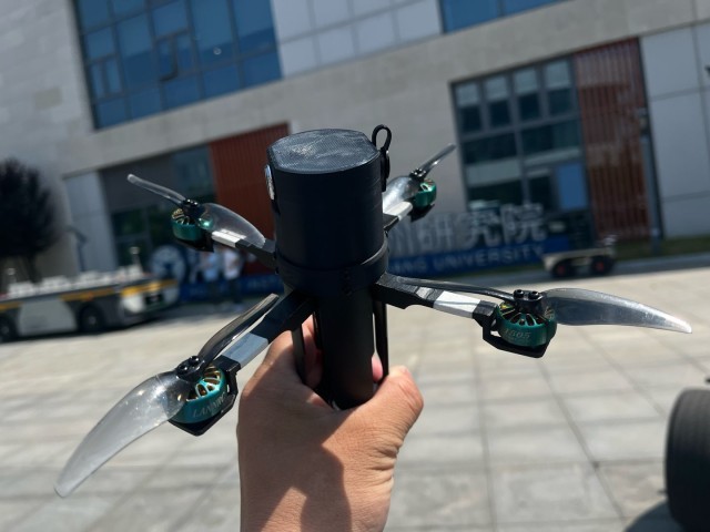 一款便携式抛物飞行的机器人,只有一个手电筒大小,轻轻往空中一抛,就能展翅高飞。这也是浙江大学湖州研究院最新研究的一款机器人。整机采用通用化设计,成本低廉,可折叠、重量轻,方便单人携带,可手持或手抛放飞,缩短放飞时间,放飞后单遥控器还能实现“一对多”的控制。