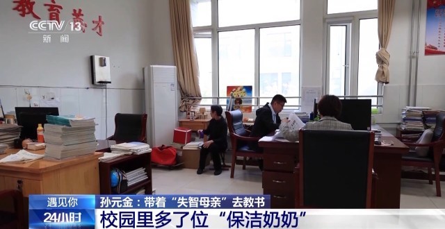 由于母亲身患阿尔茨海默病无人照料,孙元金为了更好地照顾母亲,与学校商讨后,便开始带着母亲一起上班。