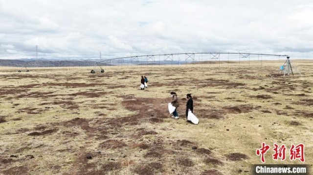 5月8日,玛曲县牧民自发在草原上捡拾垃圾。九美旦增 摄