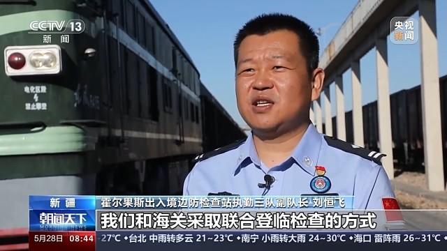 霍尔果斯出入境边防检查站执勤三队副队长 刘恒飞:我们和海关采取联合登临检查的方式对班列车体进行检查,查验出入境司乘人员和货物基本是同步进行,30分钟内即可完成查验。