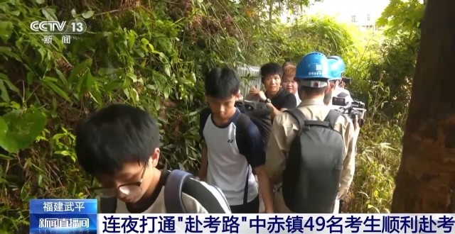 6月16日,福建龙岩武平县中赤镇遭受暴雨袭击,山体滑坡,河水暴涨,交通中断,即将去县城参加中考的40多名考生被困。当地村镇干部、消防救援人员连夜打通通往县城的主干道,护送学生顺利赴考。