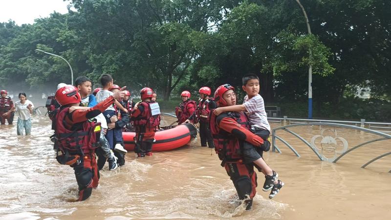 消防员转移被困小学生。桂林市消防救援支队供图