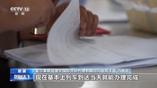 霍尔果斯站党委书记 朱君:我们在系统内就能够确定班列放关状态,及时组织解体编组,确保列车能不间断接发,较以前询问人工式放关状态中欧班列平均在站停留时间由8小时压缩到3小时。
